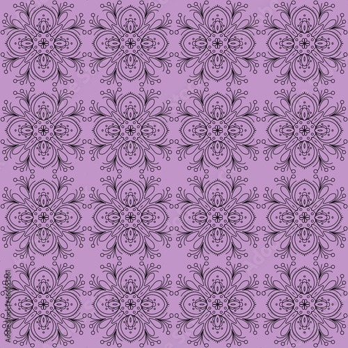 Fototapeta premium Abstract decorative flowers on lilac background, seamless decorative pattern