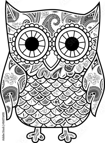 © Sergio Hayashi, Fototapeta premium abstract decorative owl with paisley pattern isolated on white background