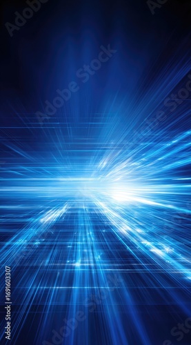 Fototapeta premium Abstract deep blue background Light rays converge in the center, creating a sense of depth and dynamic energy with a grid-like pattern and cool tones