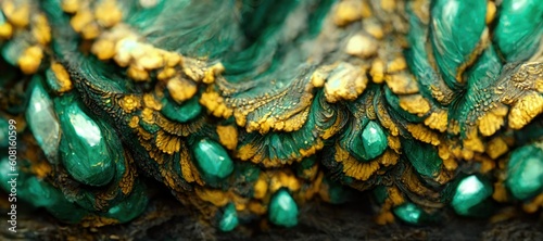 Obraz premium Abstract deep green jade with embedded gold rock specimen, cracked and...