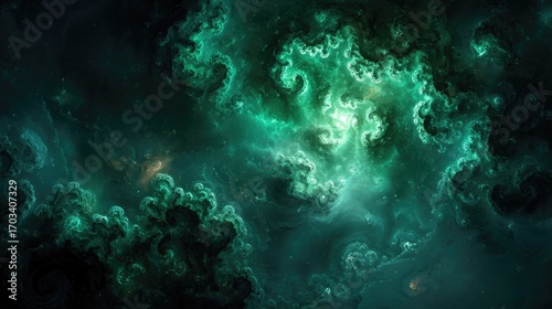 Fototapeta premium Abstract Deep Space Nebula With Green Teal Colors