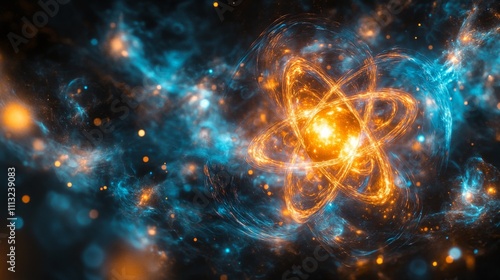 © Andrii Savchuk, Obraz premium Abstract depiction of atoms and energy flow