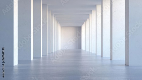 Fototapeta premium Abstract depiction of broken columns in a stark, empty space, black and white...