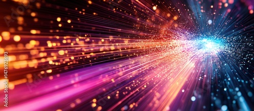 © hidayati, Fototapeta premium Abstract depiction of colorful light bursts emanating from a center point