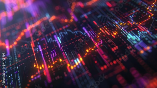© KALEYA, Obraz premium Abstract depiction of financial graphs and charts in neon colors