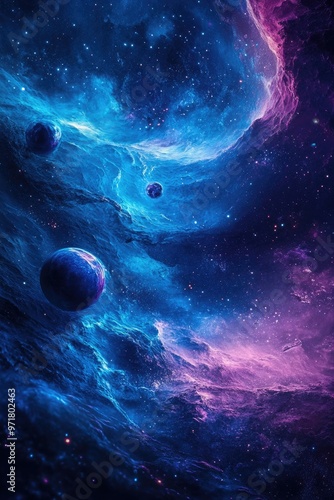 Fototapeta premium Abstract depiction of unknown planets in the vastness of deep space