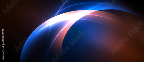 © antishock, Fototapeta premium Abstract design features curved lines, vibrant blues, reds, white light. Dramatic contrast creates modern visual impact.