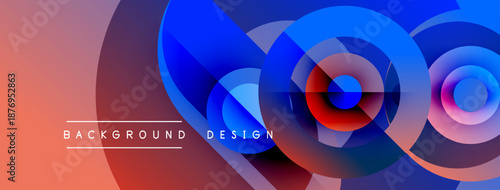 Obraz premium Abstract design features overlapping circles, vibrant colors. Gradient blends from orange to blue create dynamic visual effect. Modern background.