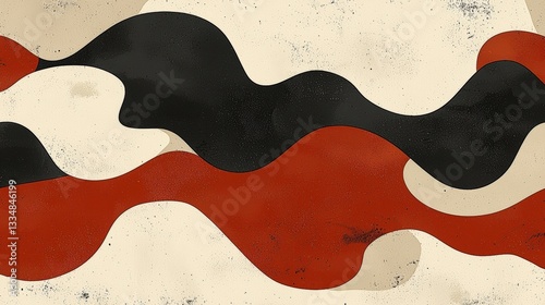 © Sukkamon, Obraz premium Abstract design featuring flowing waves in red, black, and cream colors on textured background
