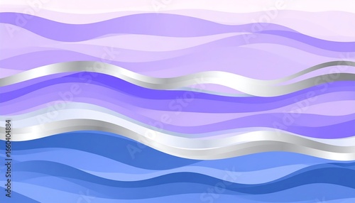 Fototapeta premium Abstract design featuring layered wavy shapes in shades of purple and blue, accented by metallic silver lines, creating a dynamic and visually appealing backdrop.