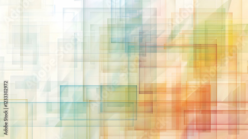 © rizkan, Fototapeta premium Abstract design featuring overlapping colorful rectangles in a gradient background.