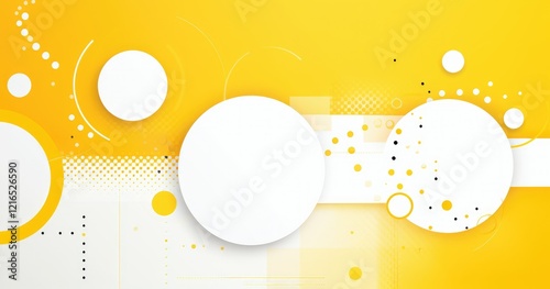 © Waa, Fototapeta premium Abstract design featuring yellow background with various circles and geometric shapes.
