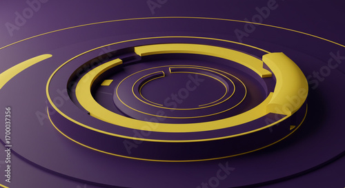 © ahmad, Obraz premium Abstract design of concentric circles in deep purple and bright yellow.