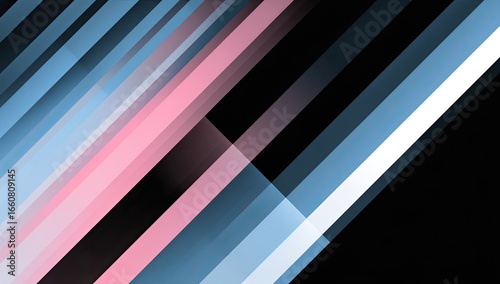 © Hahauhum, Obraz premium Abstract design with diagonal, translucent, colored stripes on a black background