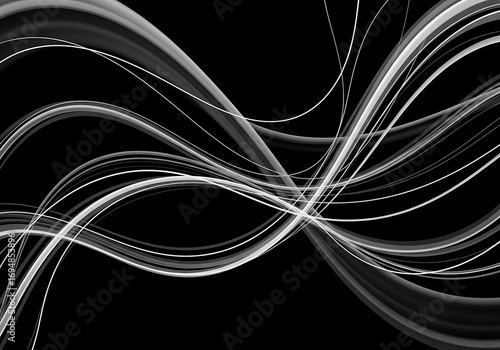 Fototapeta premium Abstract design with flowing white lines on a black background creates a...