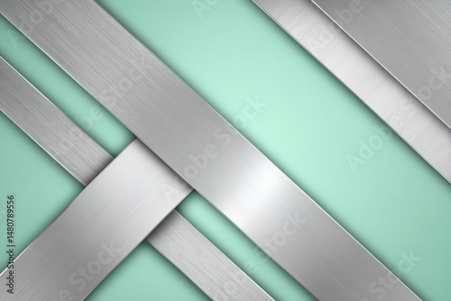 © SendalJepit, Obraz premium Abstract design with intersecting metallic stripes on a mint background.