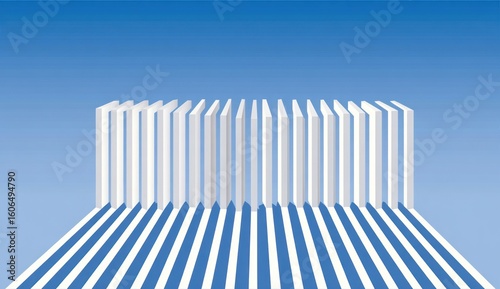 © Qianzi, Obraz premium Abstract design with white rectangular shapes and blue stripes.