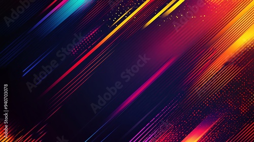 Fototapeta premium Abstract Diagonal Lines with Red, Yellow, and Blue Highlights on a Dark...
