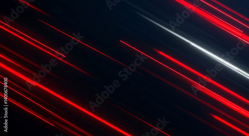 Fototapeta premium Abstract Diagonal Red and White Light Streaks on Dark Background