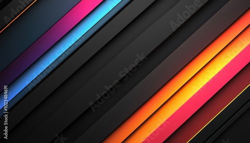 © Riz, Obraz premium Abstract Diagonal Stripes with Vibrant Color Gradient