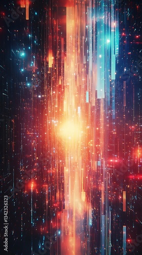 Naklejka premium Abstract digital art featuring vibrant colors and vertical lines creating a glowing effect.