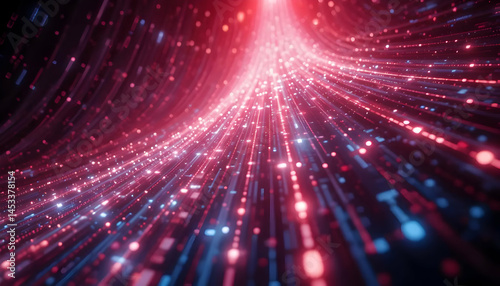 Naklejka premium Abstract Digital Art Glowing Red and Blue Particle Trails in a Dark Space,...