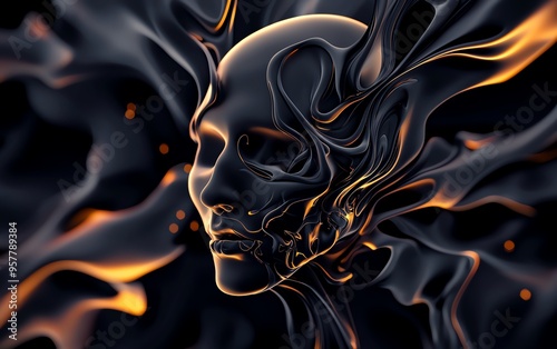 © ธนากร บัวพรหม, Fototapeta premium Abstract digital art of a human face with ethereal smoke effects and glowing accents against dark background.