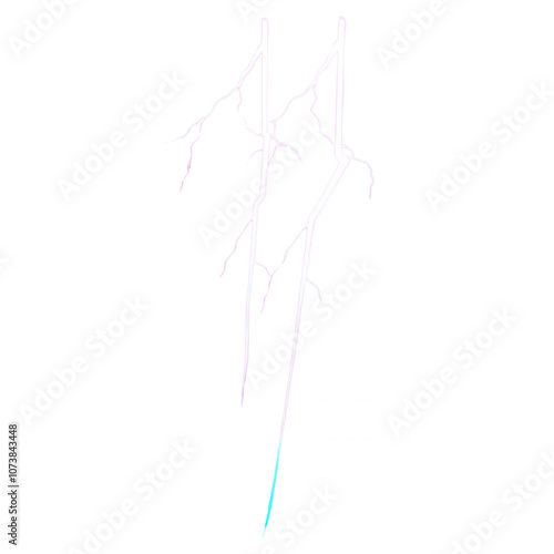 Fototapeta premium Abstract digital art of a stylized lightning bolt with pink and blue hues, isolated on transparent or white background