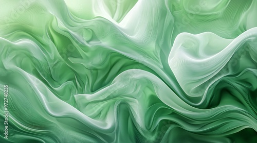 © Svitlana, Obraz premium Abstract digital art of green flowing waves with a touch of luminance, creating a serene and dynamic backdrop