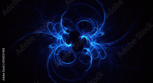Naklejka premium Abstract Digital Art Of Luminous Blue Curves On Bl