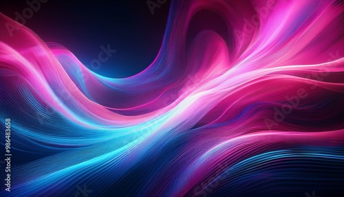 © Bonita, Fototapeta premium Abstract digital art with glowing pink and blue waves.