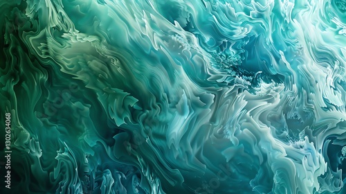 Obraz premium Abstract digital art with swirling teal and green hues.