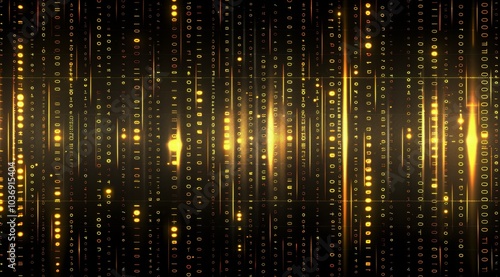 Naklejka premium Abstract Digital Art with Symmetrical Gold Lines and Data Patterns.