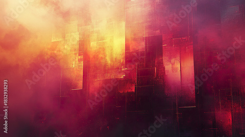 © THUA, Fototapeta premium Abstract digital art with warm glowing colors and layered geometric shapes creating mysterious and vibrant atmosphere with futuristic feel
