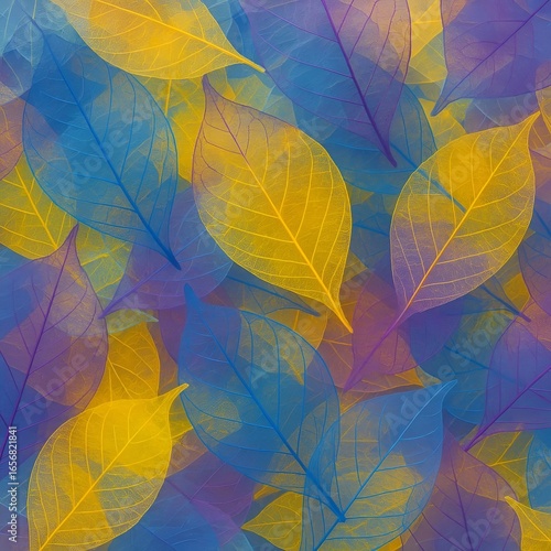 Obraz premium abstract digital artwork featuring overlapping translucent leaves in vibrant...