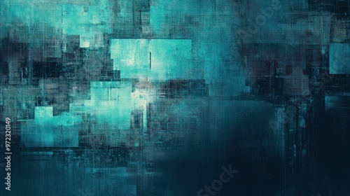 Obraz premium Abstract digital artwork in shades of blue and teal, creating a textured,...