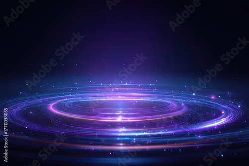 Obraz premium Abstract digital artwork showcasing a mesmerizing vortex of neon light rings and sparkling particles
