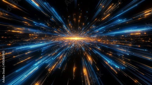 Fototapeta premium Abstract Digital Artwork Vibrant Blue Orange Streaks Radiating Light Dynamic...