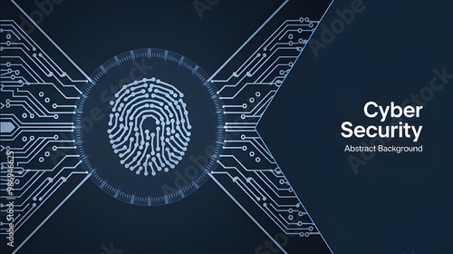 Obraz premium Abstract digital background featuring a dark blue circuit board pattern at the center a glowing fingerprint symbol representing identity verification