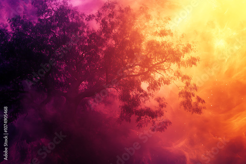 © Lora_ecology, Obraz premium Abstract digital background featuring a magical tree of life