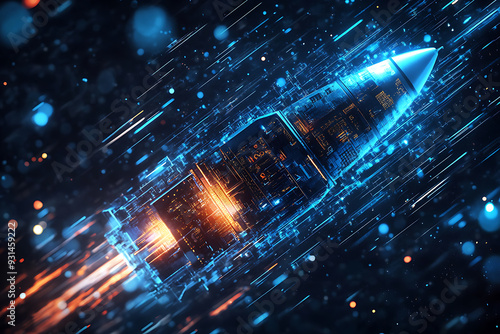 Obraz premium Abstract digital background featuring a rocket, symbolizing innovation,...