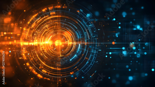 Obraz premium Abstract digital background featuring glowing orange and blue circular patterns