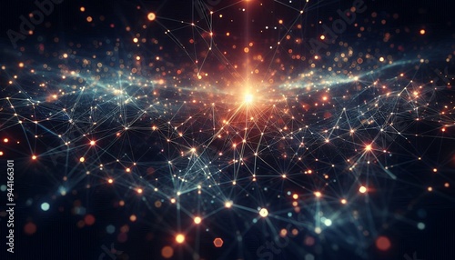 © Shamim Akhtar, Fototapeta premium Abstract digital background of points and lines with glowing plexus