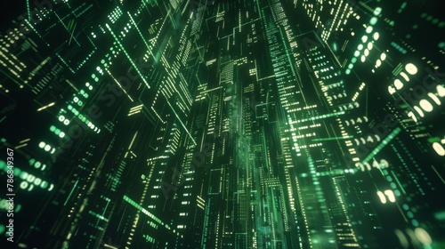 Naklejka premium Abstract digital background with binary code and AI algorithms running in the...