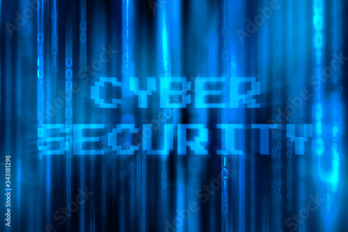 Fototapeta premium Abstract digital background with binary code compute and wording CYBER SECURITY. Hackers, darkness, virtual reality and science fiction. The matrix background with cybersecurity concept.