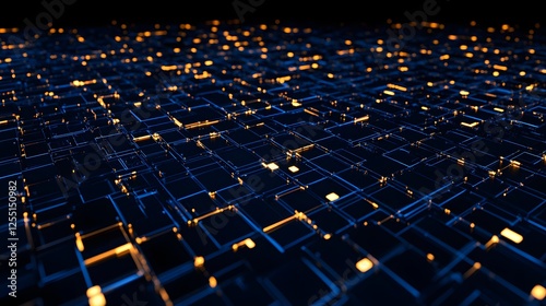 © faiz, Obraz premium Abstract Digital Background with Glowing Blue and Orange Elements