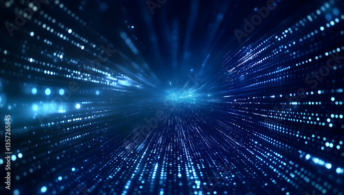 © sornram, Naklejka premium Abstract digital background with glowing blue particles moving in various directions, creating a futuristic light effect.