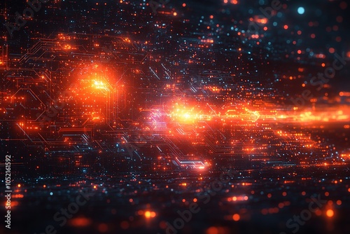 © CahPapat, Obraz premium Abstract digital background with glowing circuit board pattern.