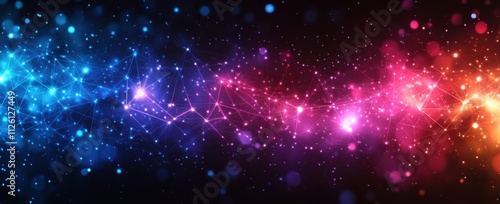 © hakule, Naklejka premium Abstract digital background with glowing connections and nodes in dark background