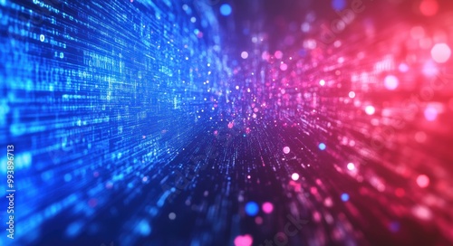 Obraz premium Abstract Digital Background with Glowing Data and Code in Blue and Red Tones
